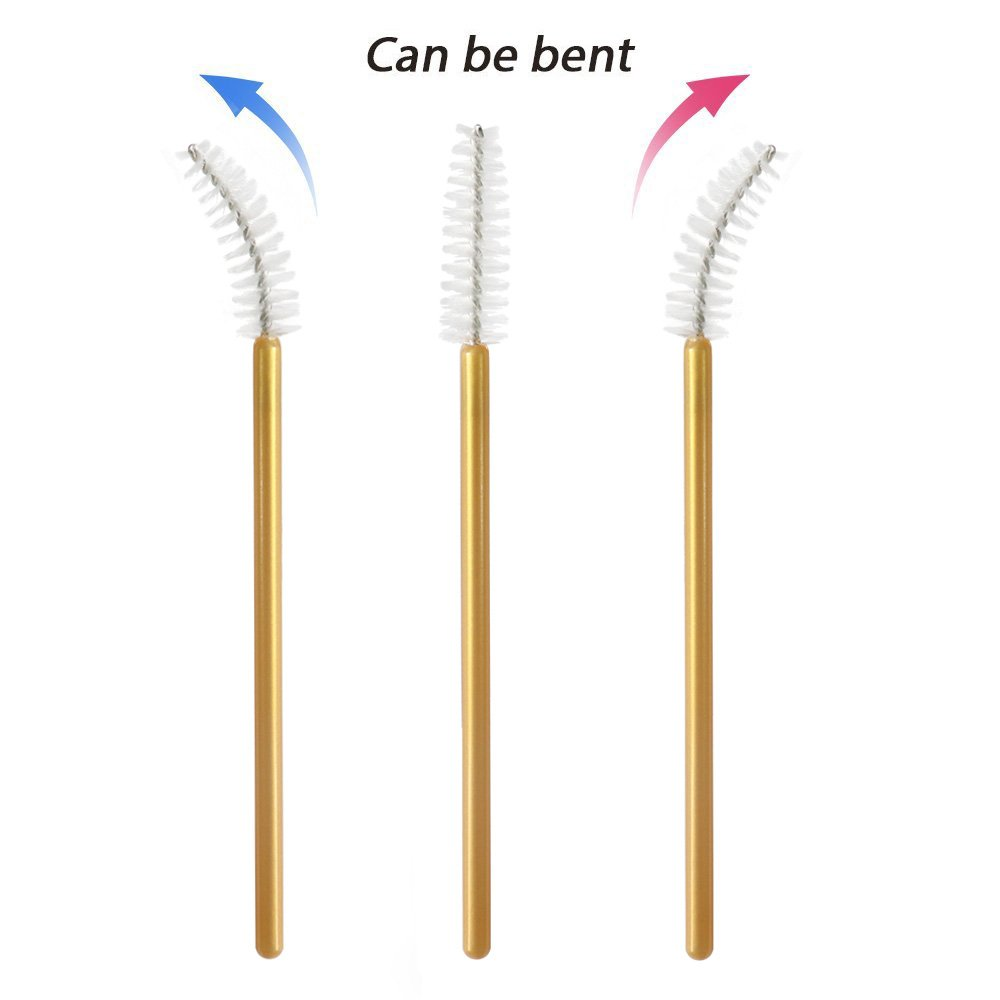 Home Beauty & Personal Care 300 Pcs Disposable Mascara Wands Brushes Eyelash Extensions Eye Lash Wand Makeup Applicators Tool, Gold/White