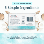 - GENTLE CASTILE SOAP Kirk’s castile soap is designed to be gentle on your skin. Cleanse and soothe dry, irritated skin, and enjoy deep moisturizing with our antioxidant-rich coconut oil soap.