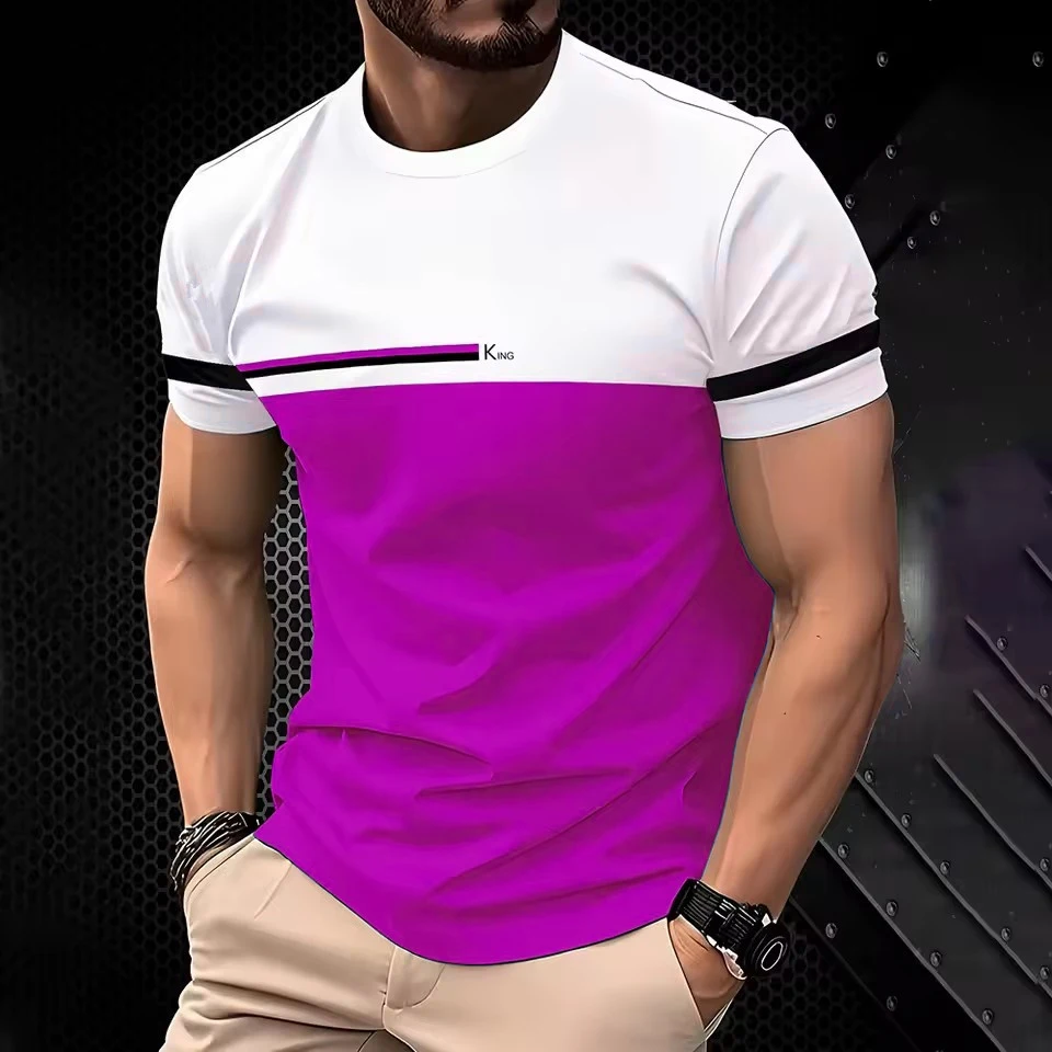 Home 👕 Men’s Fashion T-Shirts & Polos Fashion Striped And King Letter English Pattern Men’s T-Shirts Summer Short Sleeve 3D Printed Street Trend Male Tee 6XL Big Size