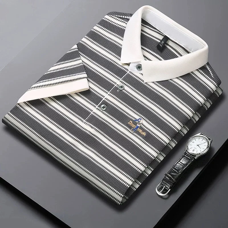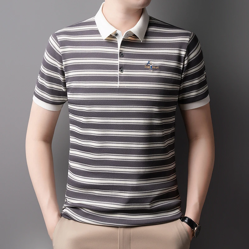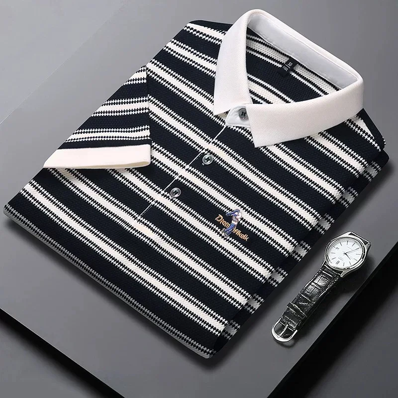 Home 👕 Men’s Fashion T-Shirts & Polos Hot sales classic striped short sleeve men‘s polo shirt trendy brand exquisite embroidery new comfortable casual lapel T-shirt