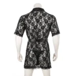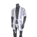 Home 👕 Men’s Fashion Sleepwear / Nightwear Lace Bathrobe Men Sexy Long Robe Nightwear Sleepwear Kimono Nightgown Loose Bath Gown Erotic Costume with T-back