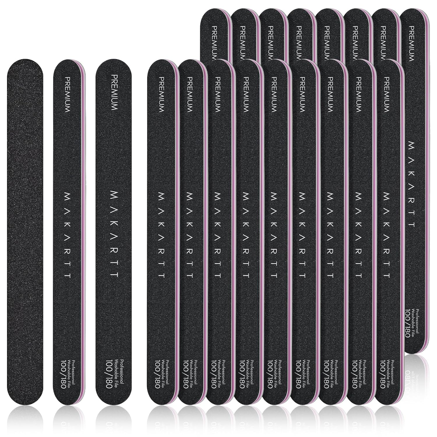 - 100/180 Different Grits – Makartt acrylic nail file set is ideal to file and rough up the hard fingernails and toe nails in 100 grit, while 180 grit smoothes up your nail edge with refined shape.